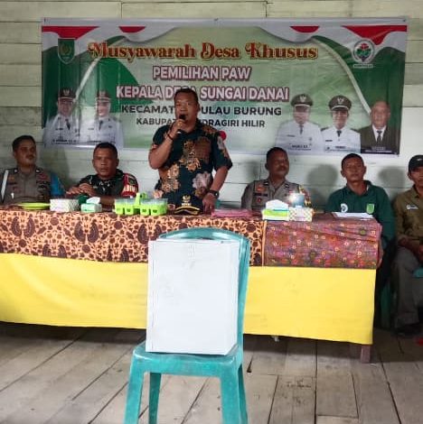 Pulau Burung – Pemilihan Kepala Desa Antar Waktu (PAW) Tahun 2025 di Aula Desa Sungai Danai, Kecamatan Pulau Burung, Kabupaten Indragiri Hilir, berlangsung aman dan kondusif pada Minggu (30/11/2025). Kegiatan tersebut mendapat pengamanan langsung dari unsur TNI dan Polri, termasuk Babinsa dari Danramil 11/PBR.