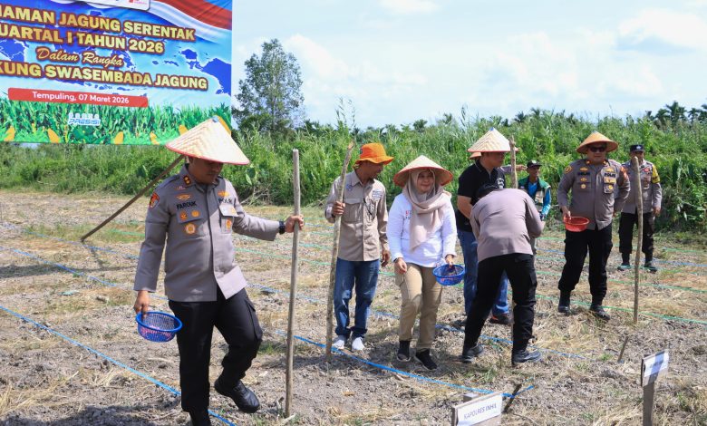 Indragiri Hilir – Dalam rangka mendukung program swasembada pangan nasional, jajaran Polres Indragiri Hilir melaksanakan kegiatan Zoom Meeting dan Penanaman Jagung Serentak Kuartal I Tahun 2026 di wilayah hukum Polsek Tempuling, Sabtu (7/3/2026).
