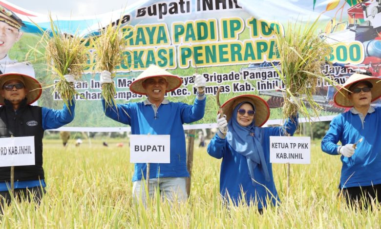Bupati dan Ketua TP.PKK Inhil Panen Raya Padi Perdana Tanam IP 300 dan Panen IP 100