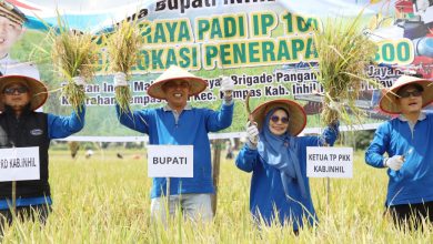 Bupati dan Ketua TP.PKK Inhil Panen Raya Padi Perdana Tanam IP 300 dan Panen IP 100