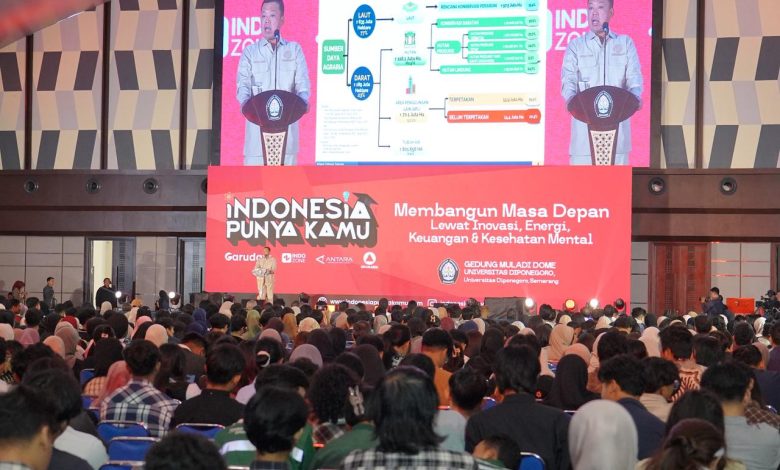 Acara Indonesia Punya Kamu ini merupakan inisiasi Garuda TV, yang mengambil tema “Membangun Masa Depan Lewat Inovasi, Energi, Keuangan dan Kesehatan Mental”. Tampak ratusan mahasiswa memenuhi Muladi Dome milik UNDIP untuk mendengarkan materi dari Menteri Nusron.