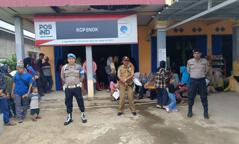 Enok – Pengamanan penyaluran Bantuan Langsung Tunai (BLT) Kesra Tahun 2025 di Kecamatan Enok, Kabupaten Indragiri Hilir, berlangsung tertib dan lancar. Tiga personel dari Polsek Enok diterjunkan langsung untuk memastikan kegiatan berjalan aman di Kantor Pos Enok, Kamis pagi.