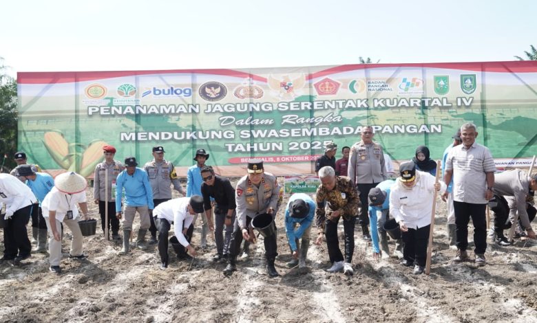 Pekanbaru – Polda Riau menggelar penanaman jagung secara serentak di Kabupaten Bengkalis. Penanaman jagung pada kuartal IV ini dipimpin langsung oleh Kapolda Riau Irjen Pol Herry Heryawan.
