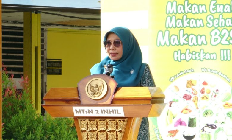 Tembilahan – Ketua TP PKK Kabupaten Indragiri Hilir, Katerina Susanti, mengajak para pelajar untuk membiasakan diri mengonsumsi pola makan bergizi seimbang dan memanfaatkan potensi pangan lokal dalam kehidupan sehari-hari. Ajakan ini disampaikan saat membuka kegiatan “B2SA Goes To School” di MTs Negeri 2 Indragiri Hilir pada Kamis, 9 Oktober 2025.