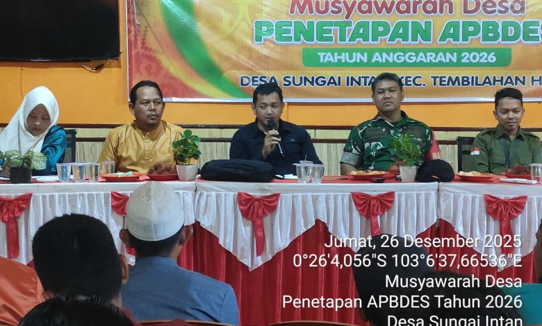 Tembilahan Hulu – Anggaran Pendapatan dan Belanja Desa (APBDes) Desa Sungai Intan Tahun Anggaran 2026 resmi ditetapkan melalui Musyawarah Desa yang dilaksanakan pada Jumat, 26 Desember 2025. Kegiatan tersebut berlangsung di Aula Pertemuan Desa Sungai Intan, Kecamatan Tembilahan Hulu, dengan suasana tertib dan penuh partisipasi.