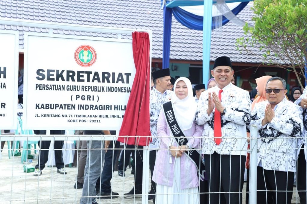 Peresmian diawali dengan pembukaan selubung papan nama yang menandai berdirinya Sekretariat dan Rumah Singgah PGRI. Keberadaan fasilitas ini diharapkan dapat menjadi pusat aktivitas yang produktif bagi anggota PGRI, tempat diskusi yang konstruktif, serta sebagai posko perjuangan dalam memperjuangkan hak-hak dan kesejahteraan guru. Dalam sambutannya, Bupati H. Herman mengungkapkan, “Sekretariat PGRI ini adalah rumah besar bagi seluruh anggota. Kami berharap tempat ini dapat menjadi sarana untuk saling berdiskusi, berkoordinasi, dan berkolaborasi demi kemajuan pendidikan di Kabupaten Inhil.”