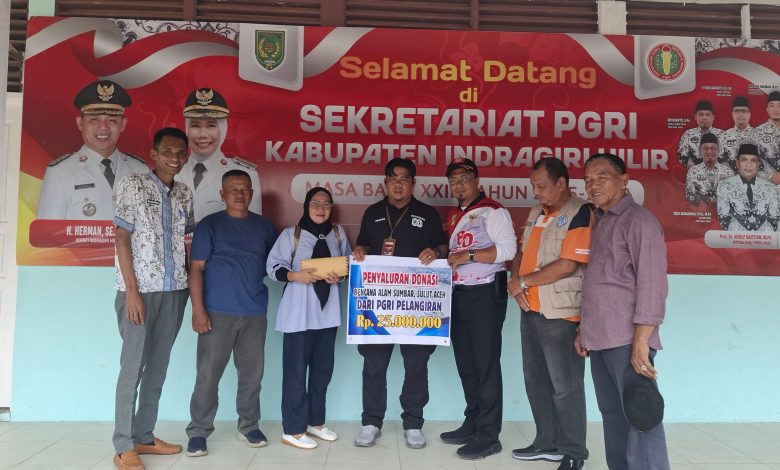 TEMBILAHAN – Persatuan Guru Republik Indonesia (PGRI) Kecamatan Pelangiran turut serta dalam kepedulian sosialnya dengan menyerahkan bantuan sebesar Rp 25 juta kepada PGRI Kabupaten Indragiri Hilir (Inhil) dalam rangka program “PGRI Peduli Sumatera”.