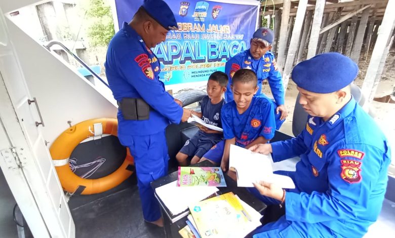 Pustaka Apung Jalur Polres Indragiri Hilir Usaha Cerdaskan Anak Pesisir