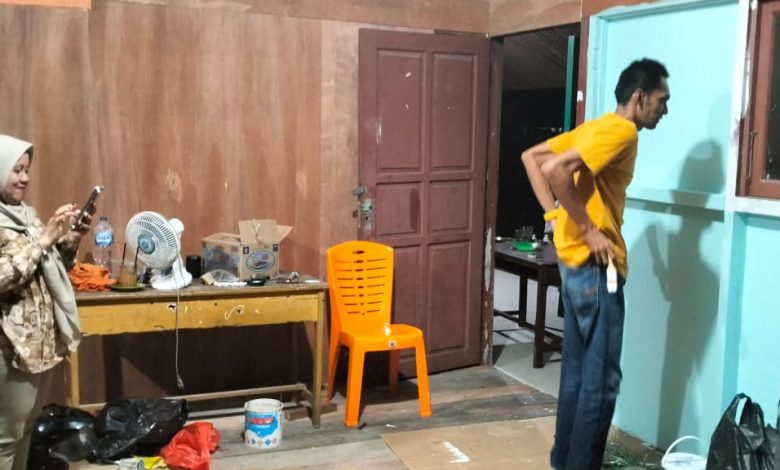 Terlihat Wakil Ketua PGRI Inhil, Agus Purwanto SPd bersama Kepala Sekrrtariat dan Admin PGRI Inhil beserta anggota lainnya tampan kompak dengan peralatan gotong royong membersihkan dan mengecat baik bagian dinding maupun plapon.
