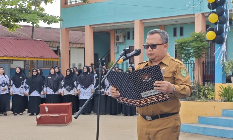 Semarak, Kadisdik Inhil Pimpin Upacara HGN dan HUT PGRI di SMPN 1 Tembilahan