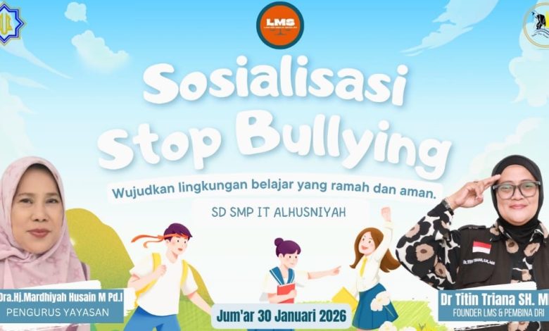 Tembilahan – Jumat, 30 Januari 2026, SD dan SMP IT Alhusniyah Tembilahan mengadakan acara sosialisasi bertajuk “Stop Bullying, Wujudkan Lingkungan Belajar yang Ramah dan Aman.” Acara ini bertujuan untuk memberikan pemahaman kepada siswa tentang pentingnya menciptakan lingkungan sekolah yang bebas dari bullying atau perundungan, sehingga semua siswa merasa aman dan nyaman saat belajar.
