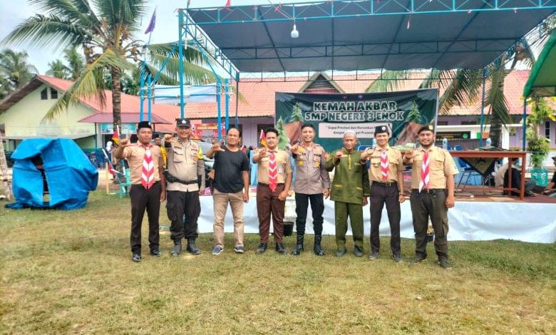 Wujud Peduli Dengan Gerakan Pramuka Inhil, Kapolsek dan Anggota Polsek Enok laksanakan Monitoring Kegiatan Perkemahan Akbar di SMP Negri 3 Enok